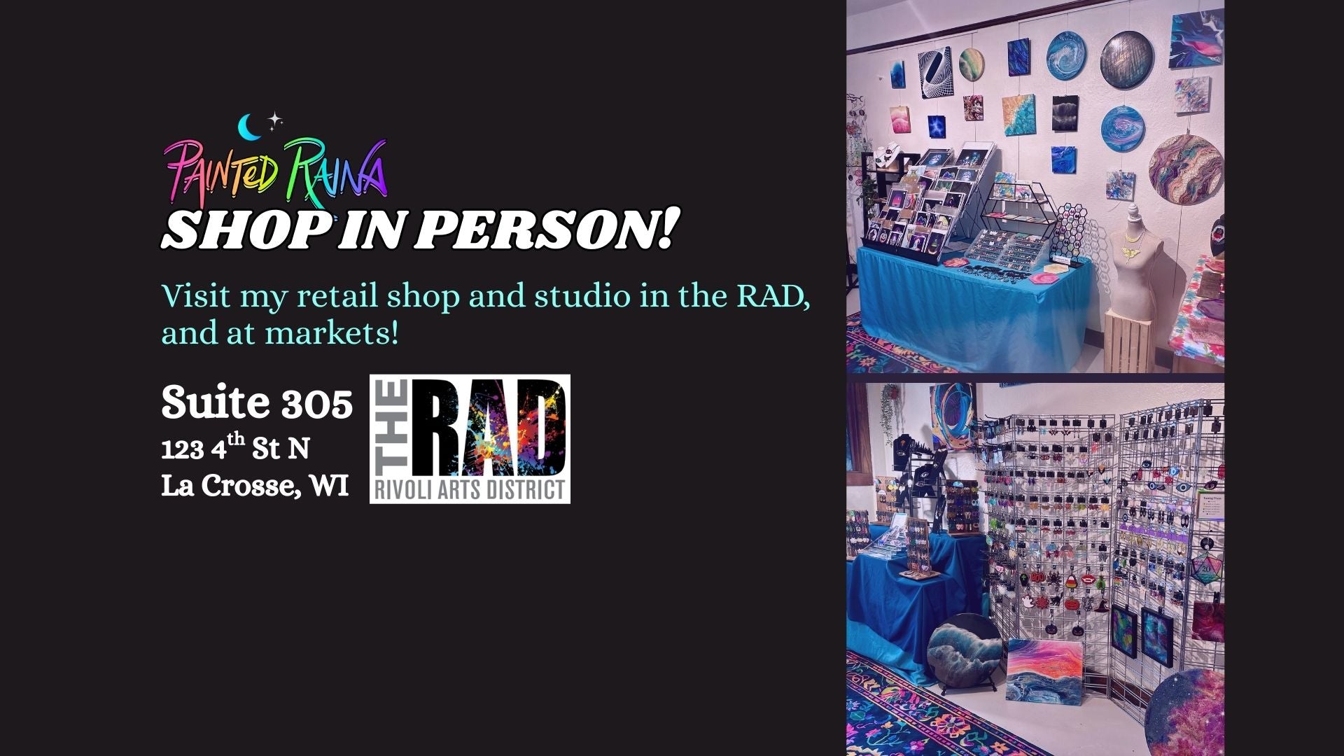 Part-magpie, part-multi-disciplinary-artist and owner 'Painted Raina, the Witch of WTF' captures a bit of ethereal, otherworldly magic in all her creations. From statement earrings to functional art to nature-inspired fine art, each shining and sparkling piece is jewelry for you or your home.