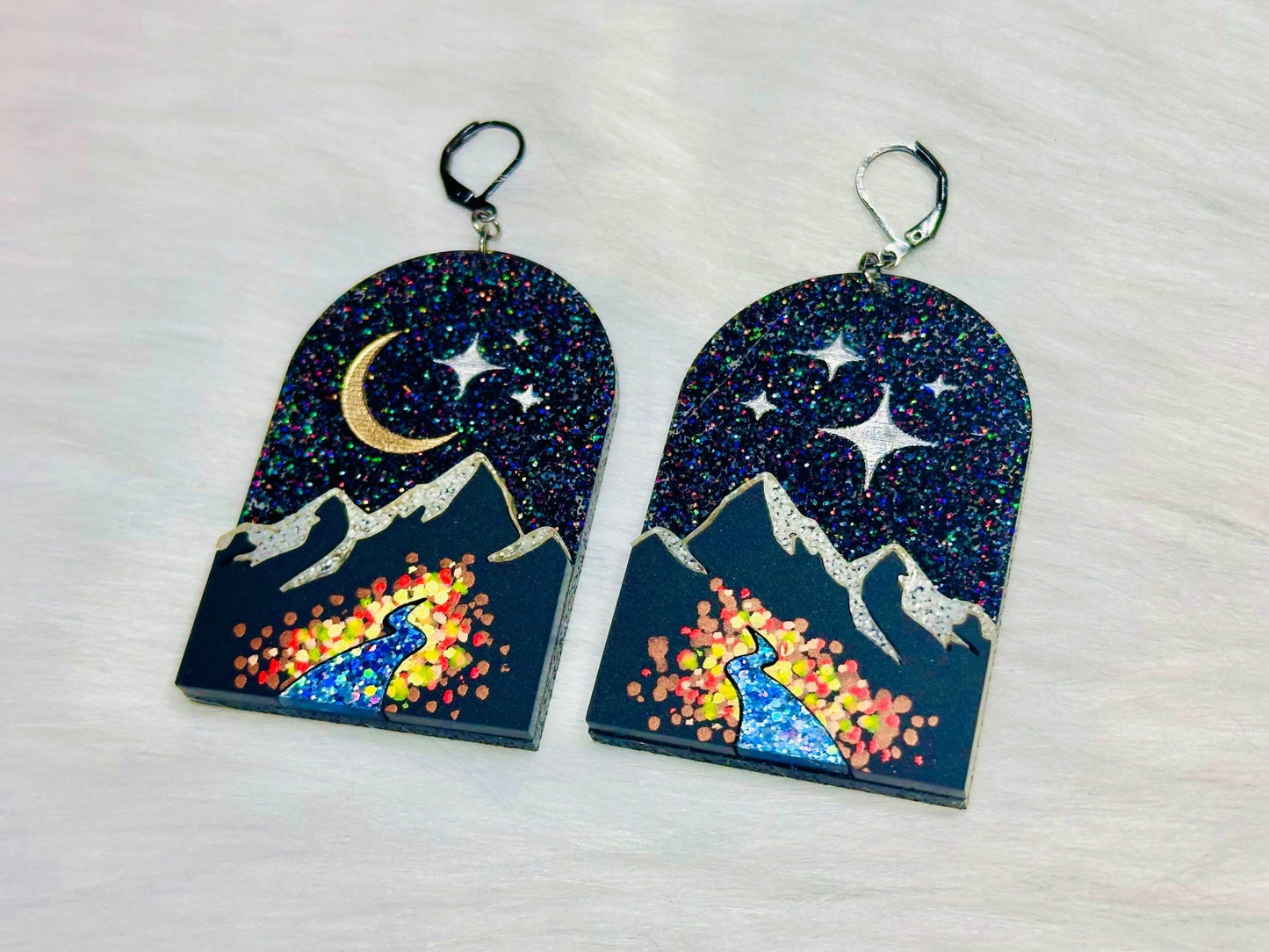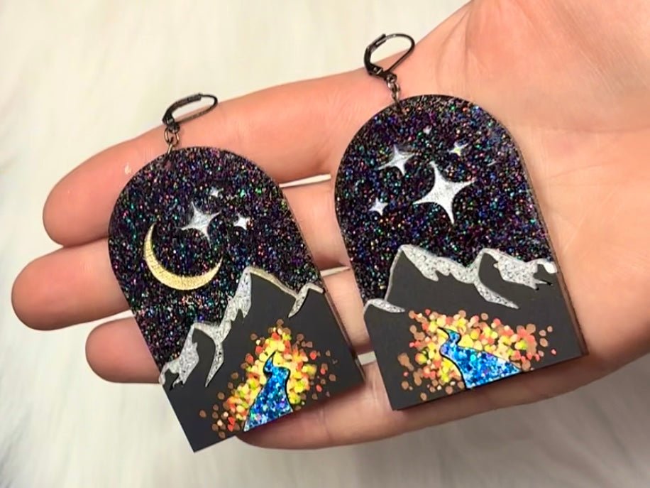 The City of Starlight’s denizens can show their love for the Night Court’s crown jewel with these glittering hand-painted acrylic landscape earrings!