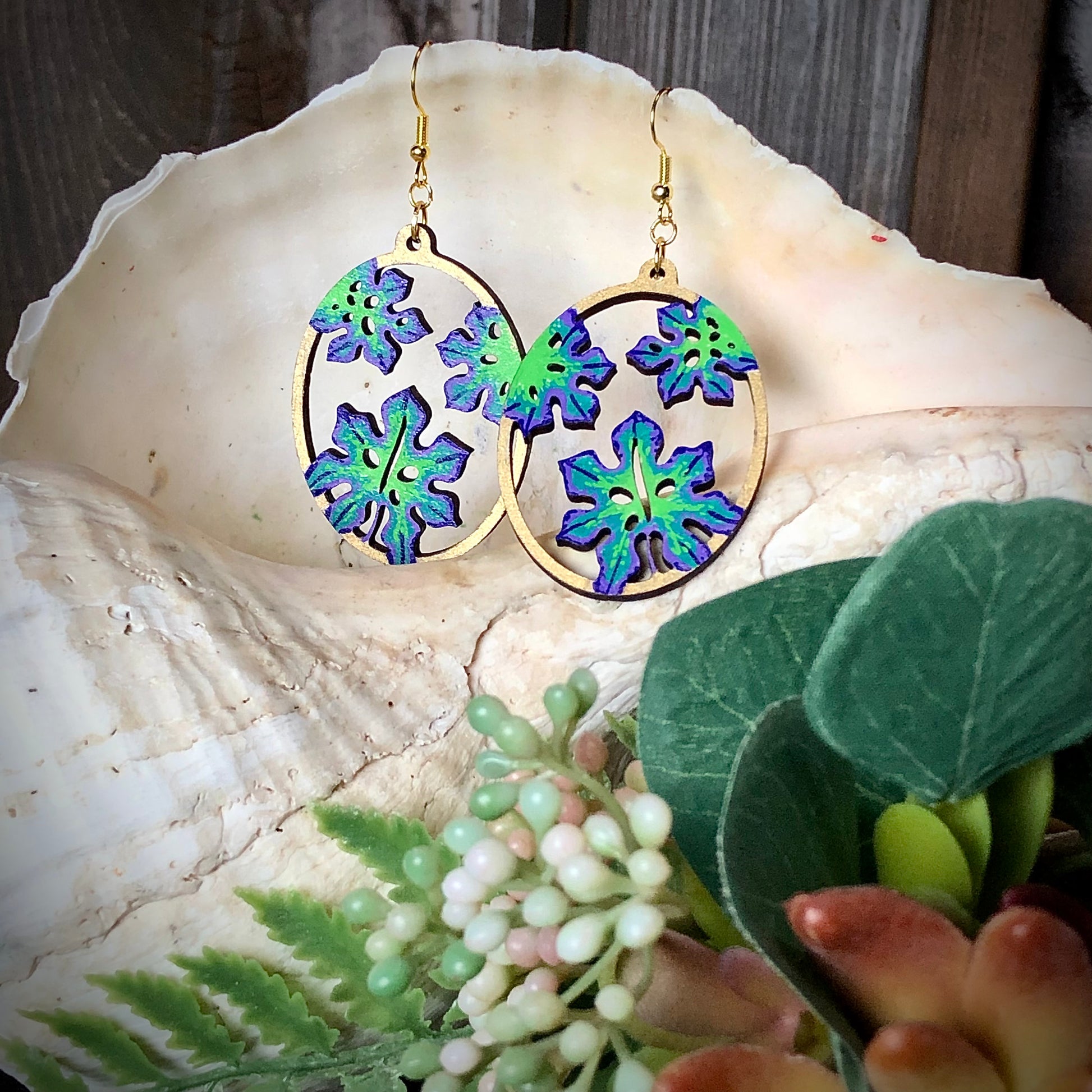 These hand-painted wood earrings are lightweight but loaded with style! Each pair is made to order, so yours may have some tiny variations from the photographs.