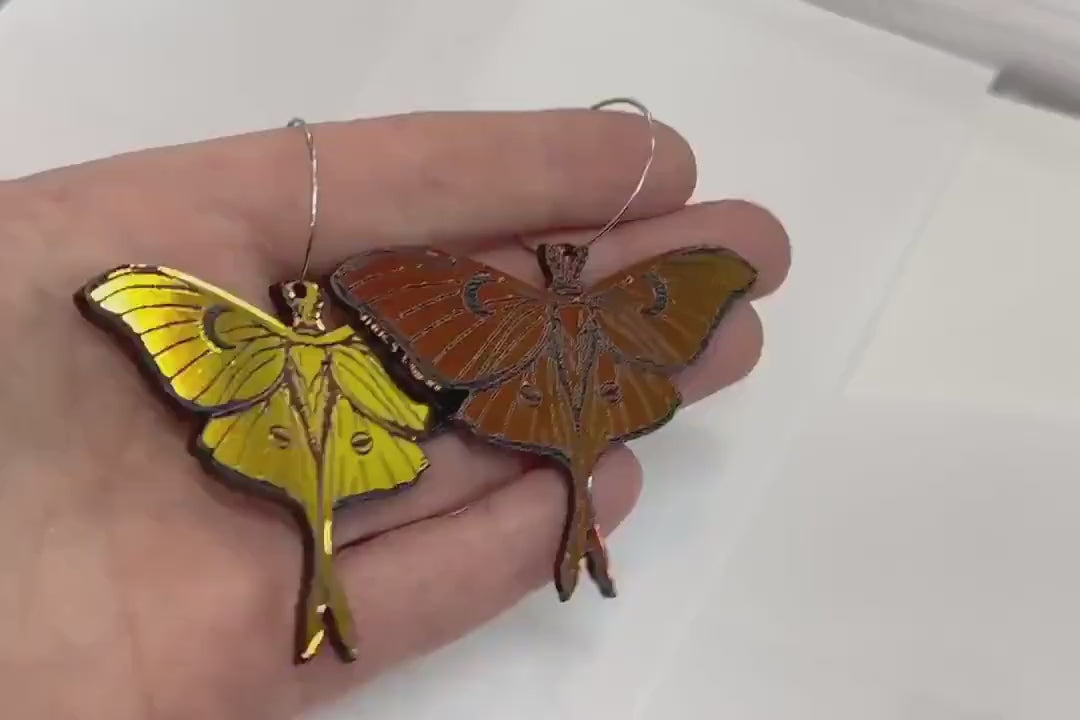 These midnight prism iridescent acrylic luna moth earrings are lightweight but will make your style soar! This is an exclusive design you can only get from my shop!