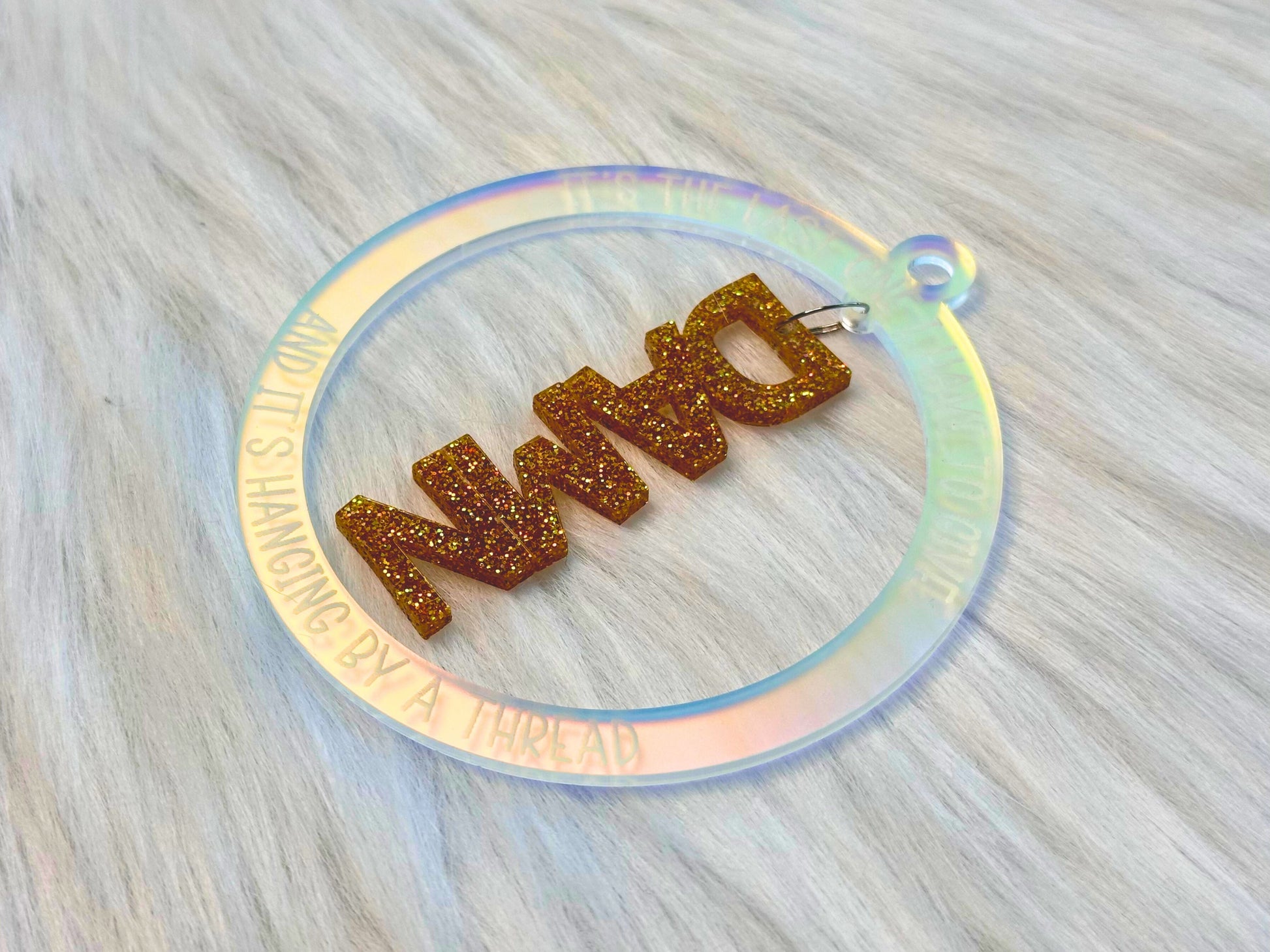 Choose your favorite shade of glitter to give that last damn all the pizzazz and panache it deserves! The engraved frame is made from frosted iridescent acrylic.