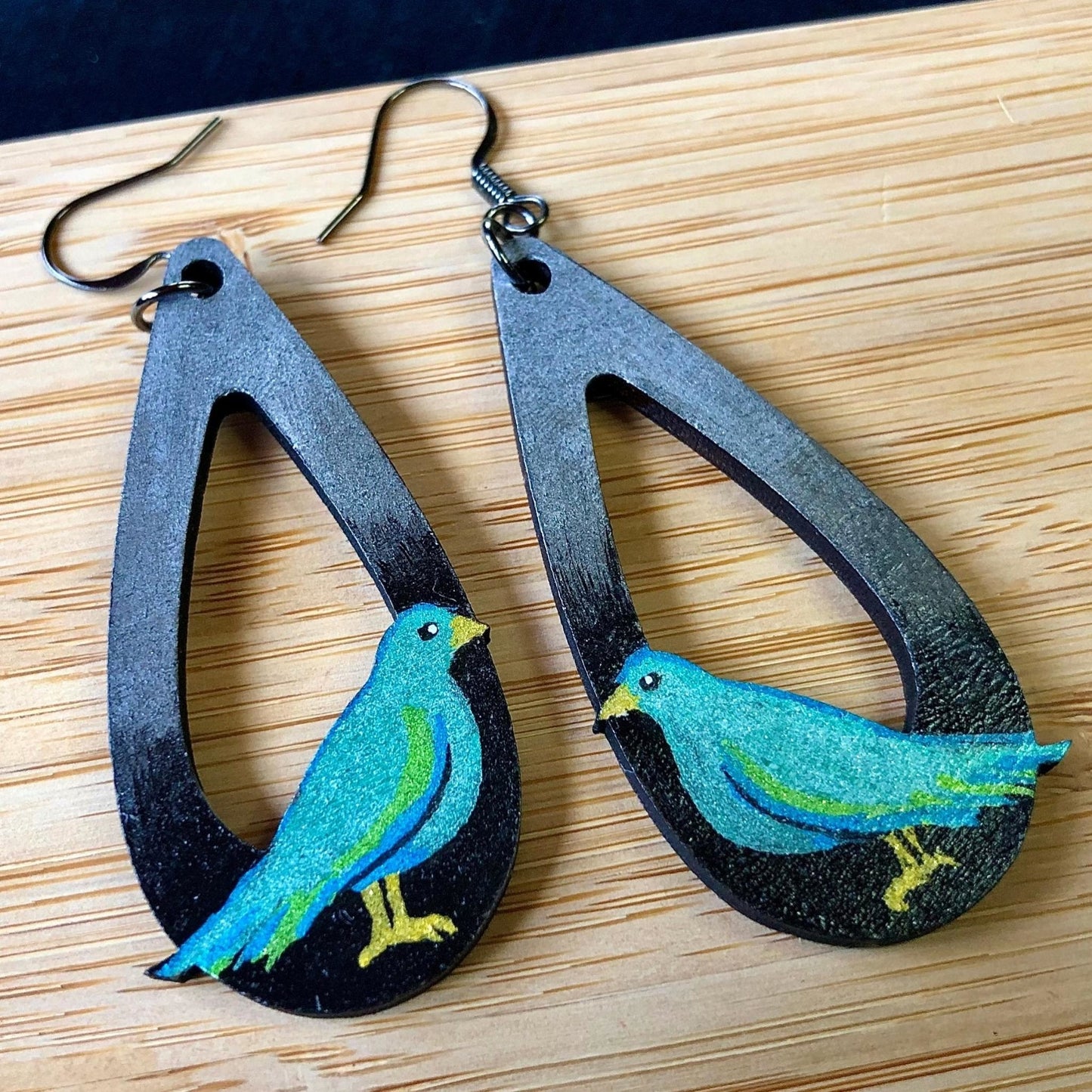 These one-of-a-kind hand-painted wood earrings are so light-weight they may fly away!